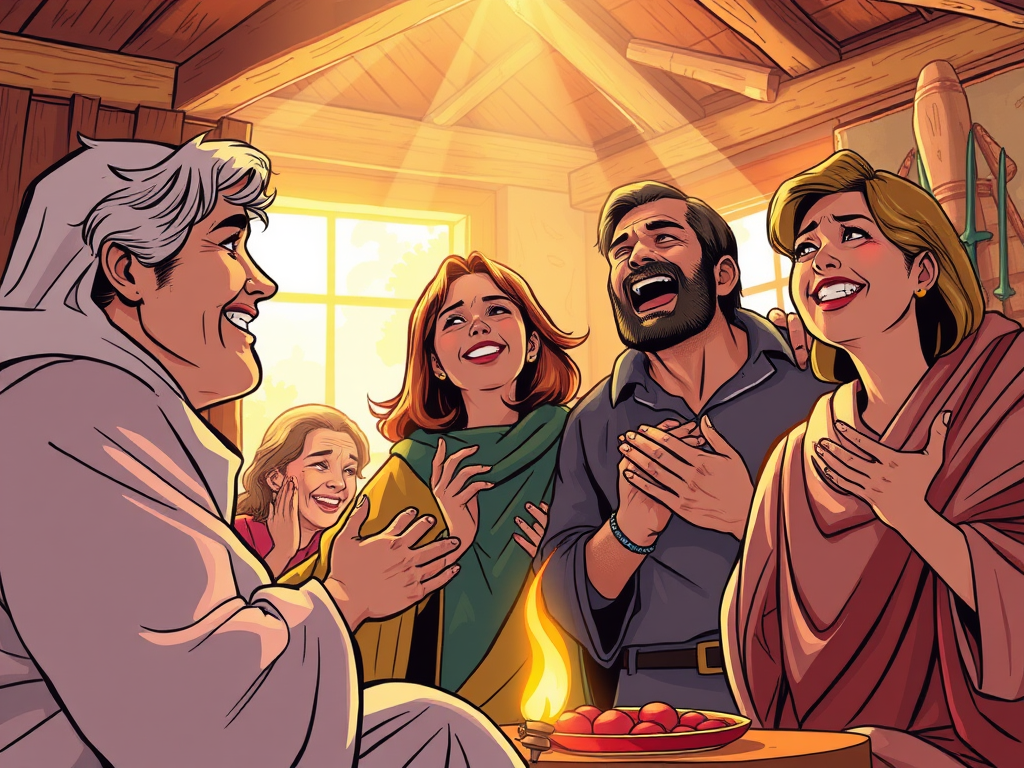 “The voice of rejoicing and salvation is in the tabernacles of the righteous.” They sympathized in the delight of their leader and they abode in their tents in peace, rejoicing that one had been raised up who, in the name of the Lord, would protect them from their adversaries. The families of believers are happy, and they should take pains to give their happiness a voice by their family devotion. The dwelling-place of saved men should be the temple of praise; it is but righteous that the righteous should praise the righteous God, who is their righteousness. The struggling hero knew that the voice of woe and lamentation was heard in the tents of his adversaries, for they had suffered severe defeat at his hands; but he was delighted by the remembrance that the nation for whom he had struggled would rejoice from one end of the land to the other at the deliverance which God had wrought by his means. That hero of heroes, the conquering Savior, gives to all the families of his people abundant reasons for incessant song now that he has led captivity captive and ascended up on high. Let none of us be silent in our households: if we have salvation let us have joy, and if we have joy let us give it a tongue wherewith it may magnify the Lord. If we hearken carefully to the music which comes from Israel’s tents, we shall catch a stanza to this effect,